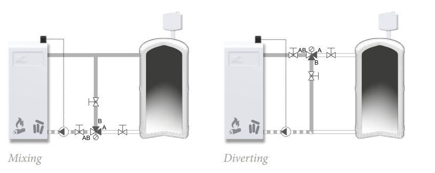 lai aizsargātu katlu no pārāk zemām atgriezes temperatūrām.