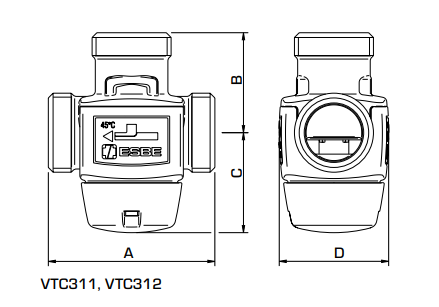 VTC311 3-ceļu termovārsts ¾”i.v. 45*C Kvs 3,2 misiņš ESBE
