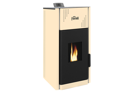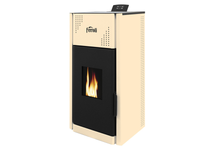 • Mirano Pellet N ir automatizēts centrālās apkures kamīns, pilnībā aprīkots ar siltumsūkni, izplešanās tvertni, drošības vārstu, drošības termostatu, digitālo vadības paneli, pašattīrīšanos, palielinot gaisa plūsmu, granulu tvertni un noņemamu pelnu trauku.
