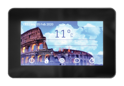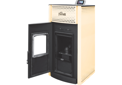 • Salerno Pellet ir automatizēts centrālās apkures kamīns, pilnībā aprīkots ar siltumsūkni, izplešanās tvertni, drošības vārstu, drošības termostatu, skārienjutīgu vadības paneli, pašattīrošu granulu degli, granulu tvertni un noņemamu pelnu trauku.